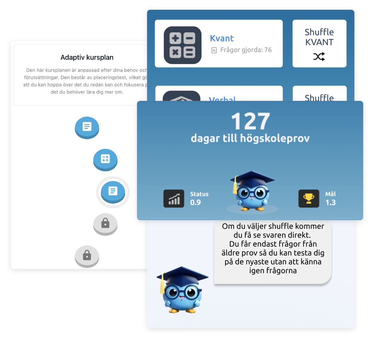 Vår app erbjuder en AI-driven, skräddarsydd studieplan, designad för att hjälpa dig hitta den mest effektiva vägen till att nå 2.0.